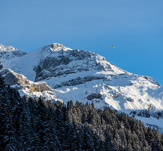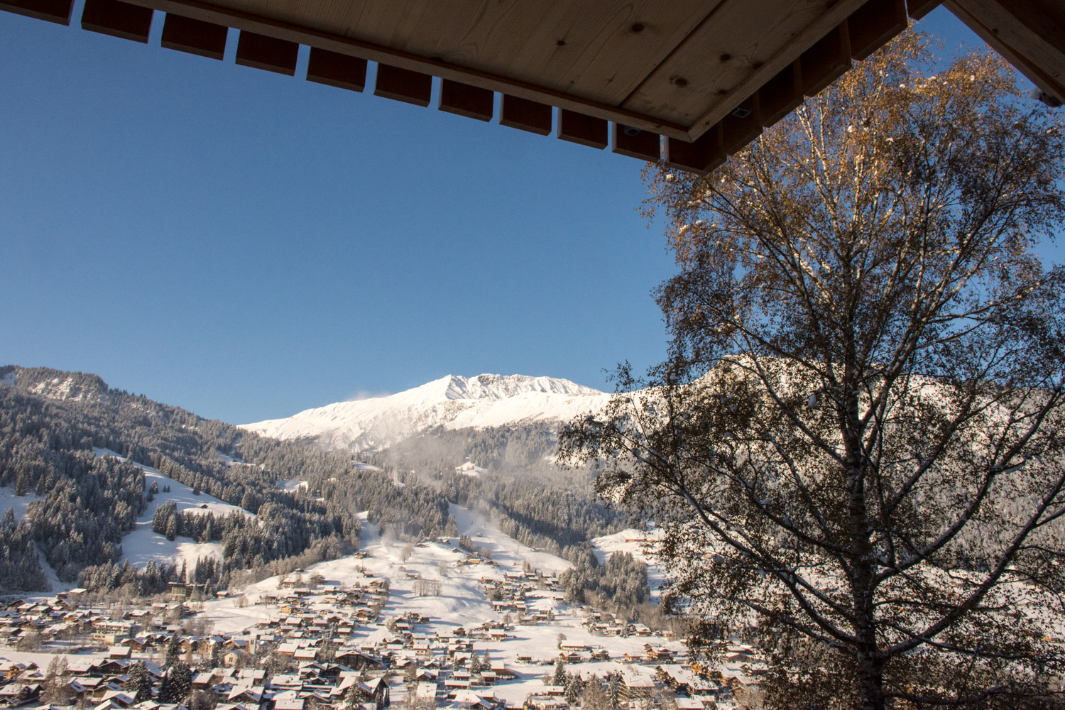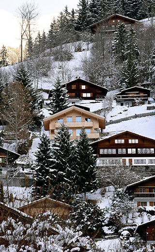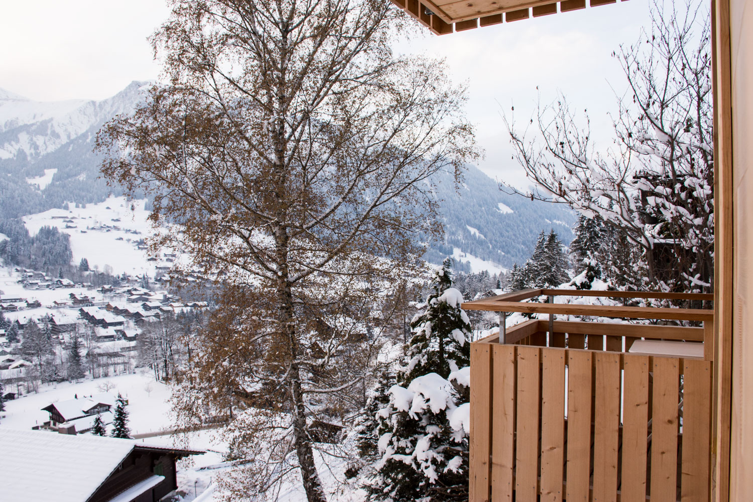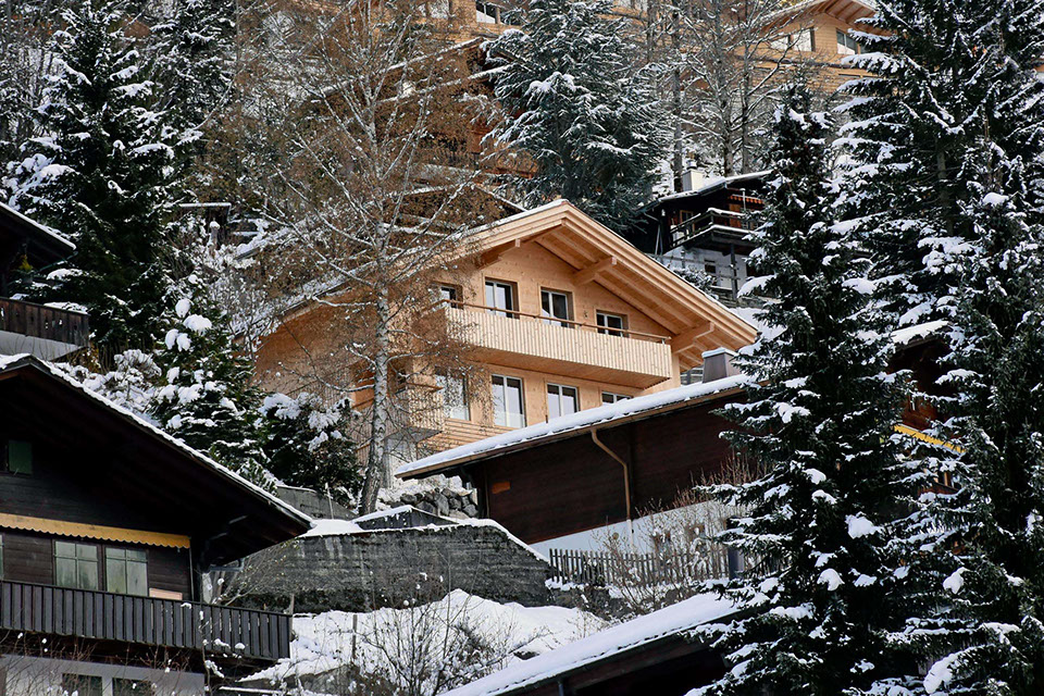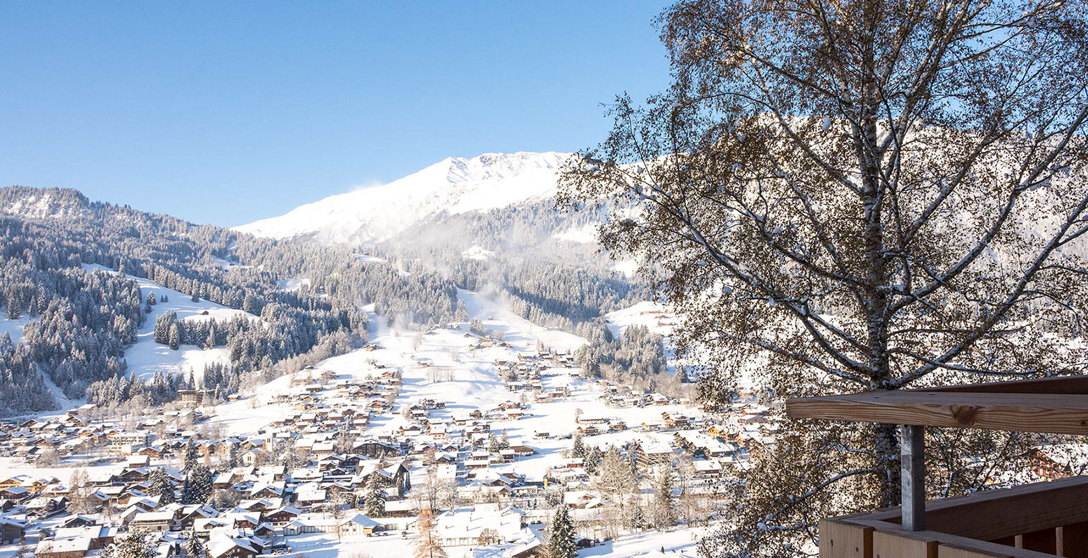 Auf dem Balkon hoch über dem Tal hörst du den Bergbach rauschen. Abends, nach dem letzten Alpenglühen, glitzern die Lichter der Lenk unter dir.