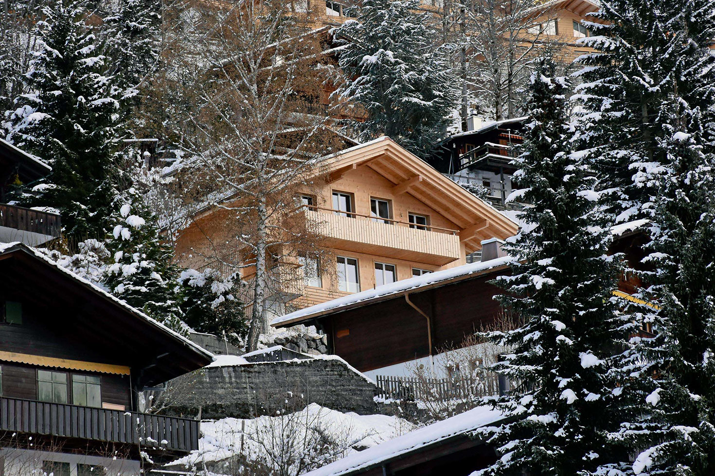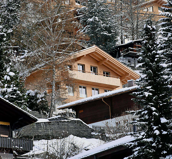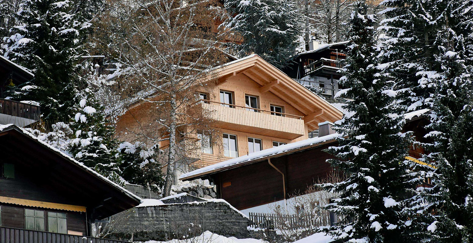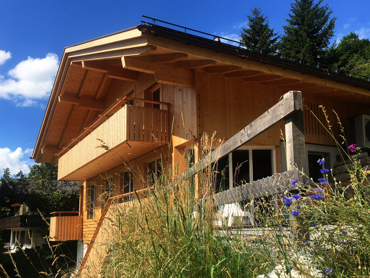 Du kommst in einer fantastischen Bergwelt an, steigst 10 Minuten den Berg hoch zum Haus, welches dir aus noch hellem Fichtenholz entgegenleuchtet.